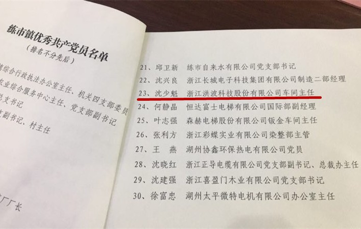 党在洪波:洪波党委成立于1997年,设立了设备齐全、教学严谨的“浙江省先进基层党校”,以内外交流、创新发展的“传帮带”党员带头模式,营造出了“青春党建”、“党员先锋”的优秀氛围。曾被评为:湖州市先进基层党组织、湖州市“发展强、党建强”先进企业党组织。